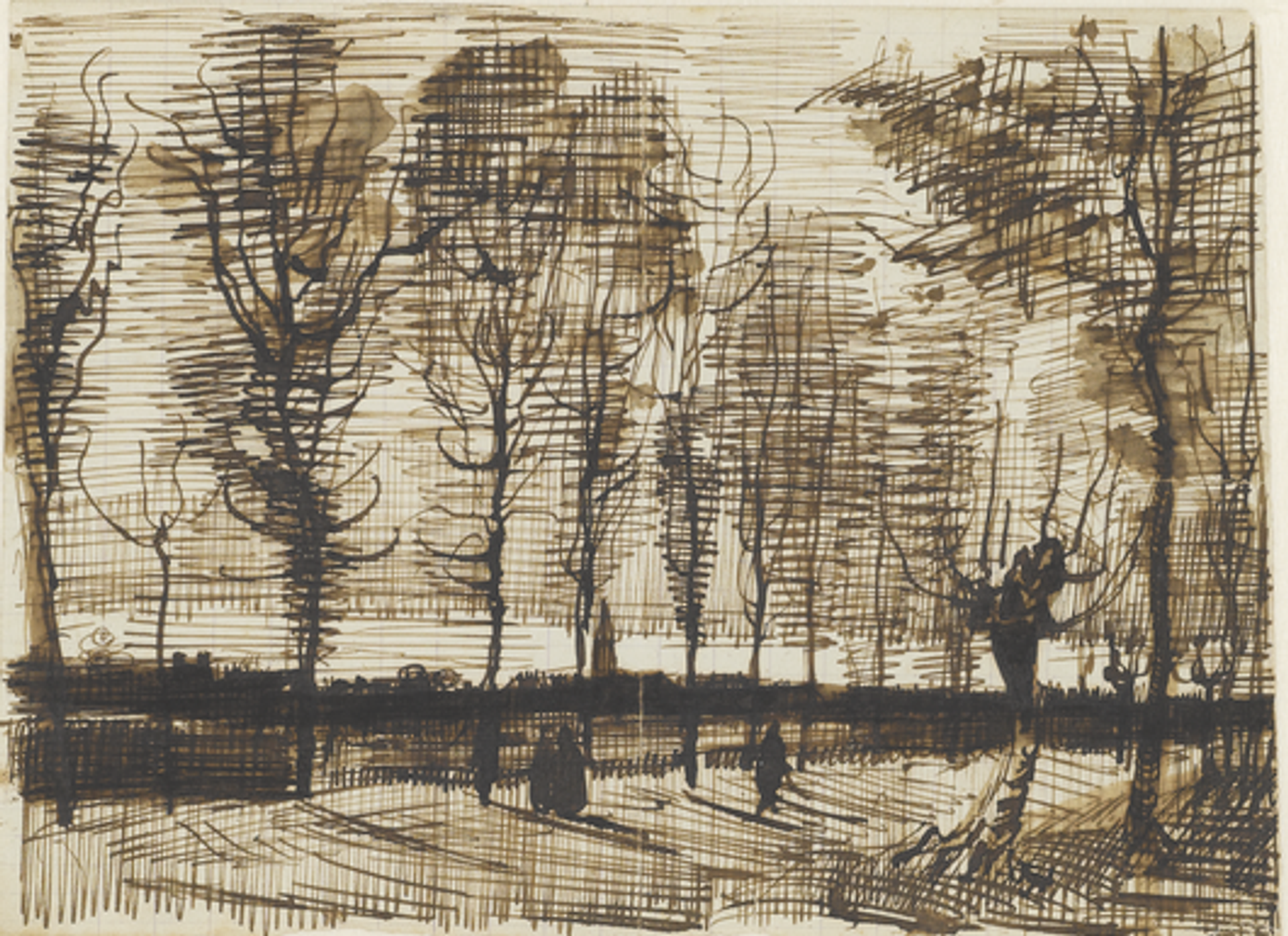 Van Gogh’s sketch of Poplars near Nuenen in his letter to Theo, around 17 November 1885