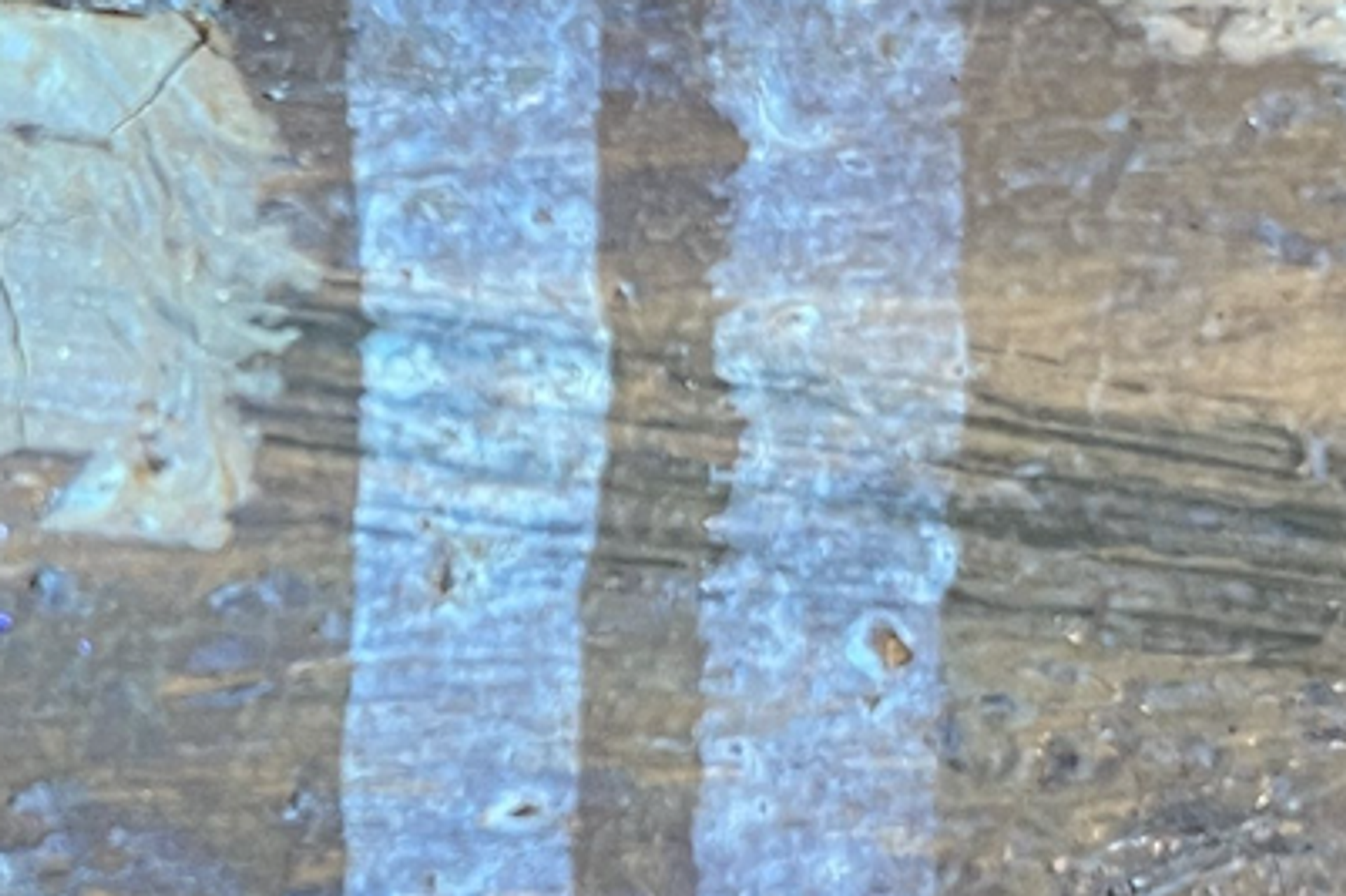 Drips, probably caused by linseed oil, which are highlighted with ultraviolet light in a magnified segment of Poplars near Nuenen