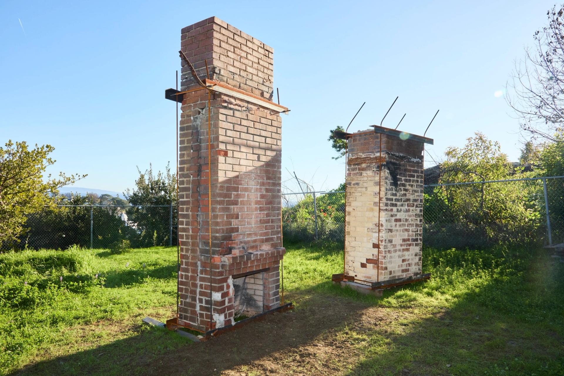 Chimneys from homes designed by Eric Lloyd Wright and Richard Neutra that survived the fire Photo: J. Abreu