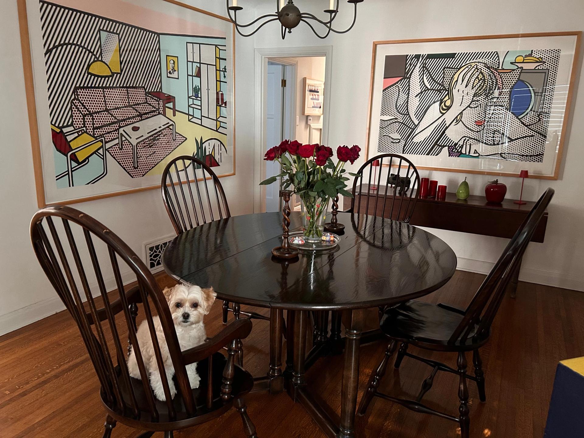 On display in Rina Mark’s dining room are Roy Lichtenstein’s Modern Room and Thinking Nude