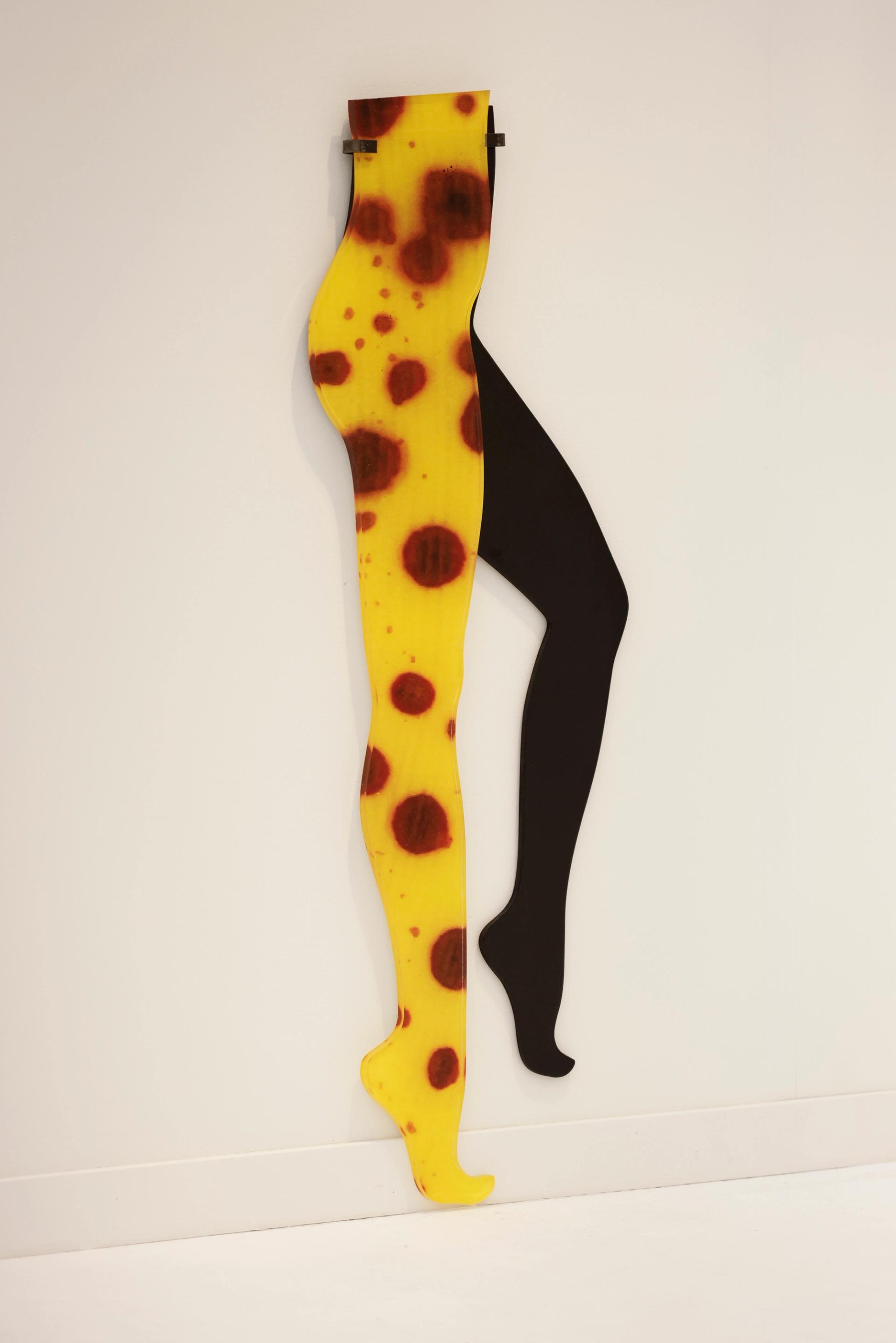 The British artist Anthea Hamilton is stopping visitors in their tracks with a playful pair of disembodied legs, one of which features the splotchy brown-on-yellow pattern of a bruised banana. “This is part of a series she has been doing for several years criticising the male gaze and the fetishisation of women’s legs,” says Victor Lozano, an associate director at Kaufmann Repetto. The wall-mounted sculpture is priced at £20,000.