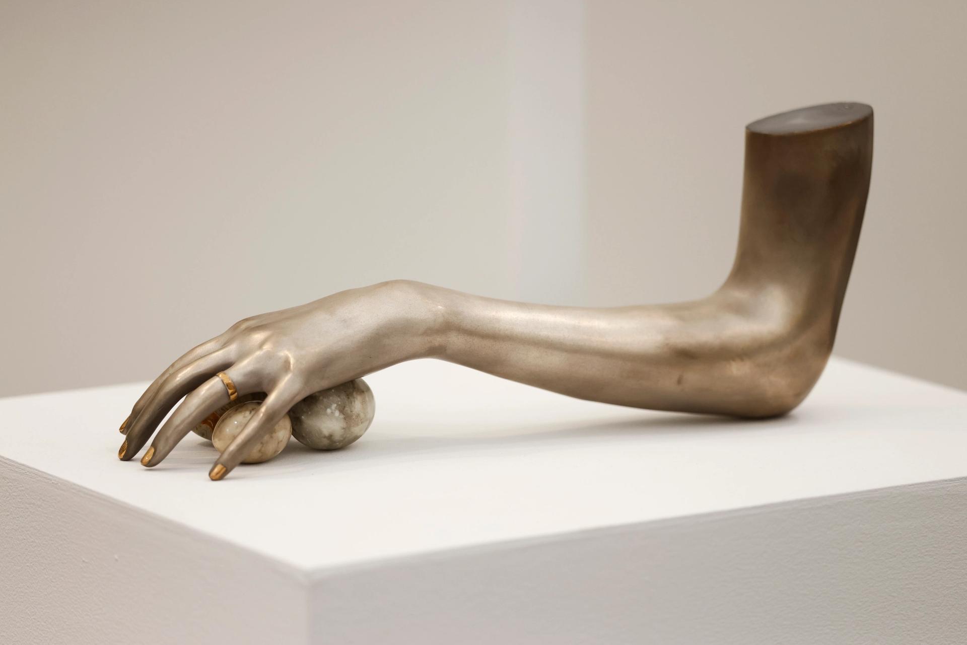 A daughter of the beloved local artist Lita Albuquerque, Isabelle started out as a performance artist. Recently adding visual art and sculpture to her repertoire, she is focusing on individual body parts, weaving together limbs and organic shapes—like eggs and flowers—as a commentary on the symbiotic relationship of the human body with the natural world. (In a happy accident, parts of her sculptures rock back and forth ever so slightly as visitors walk by.) Take as long as you want is available for $22,000.