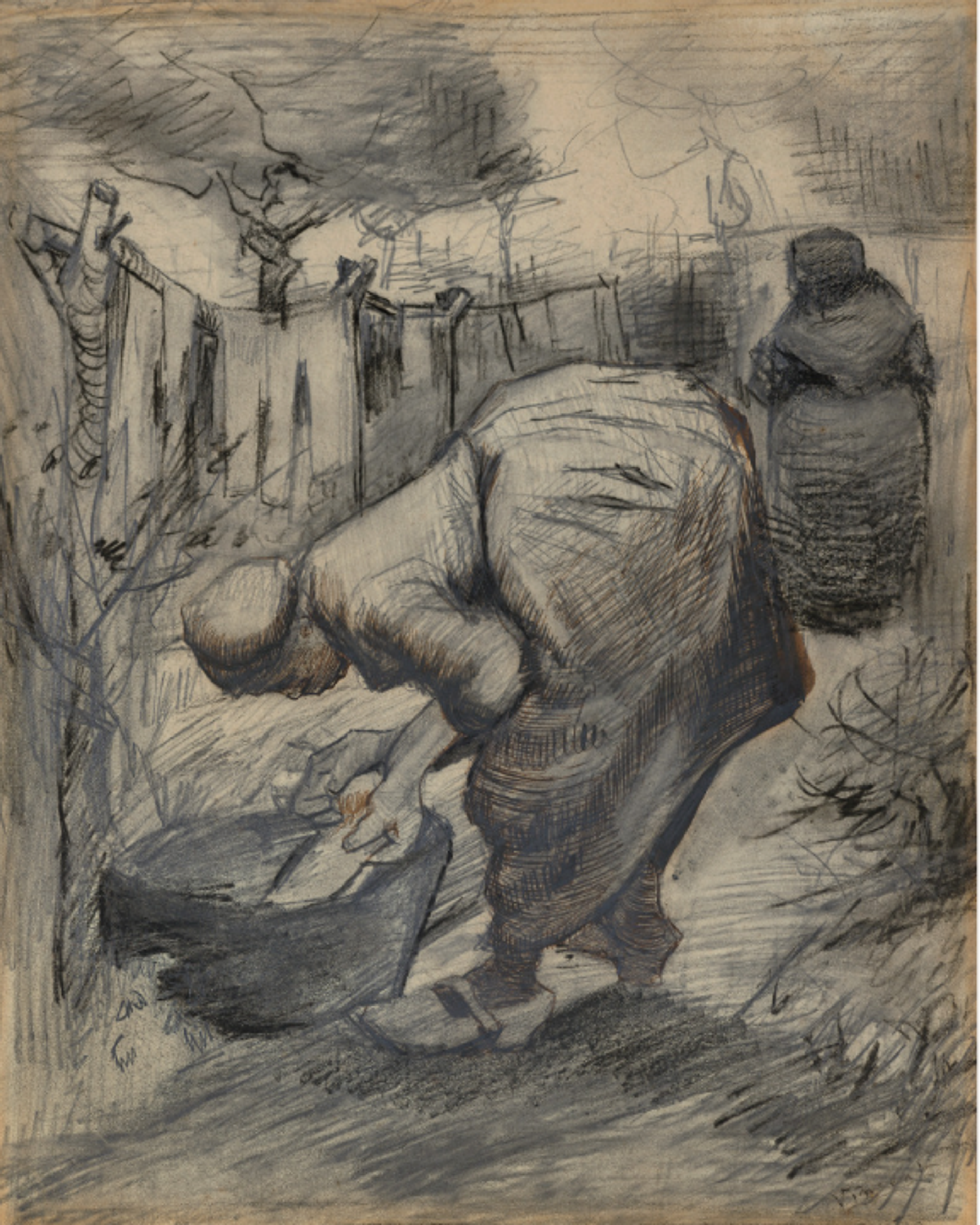 Van Gogh’s Peasant woman with a washtub in a garden (Paysanne au bassin dans un jardin) (September-October 1885)