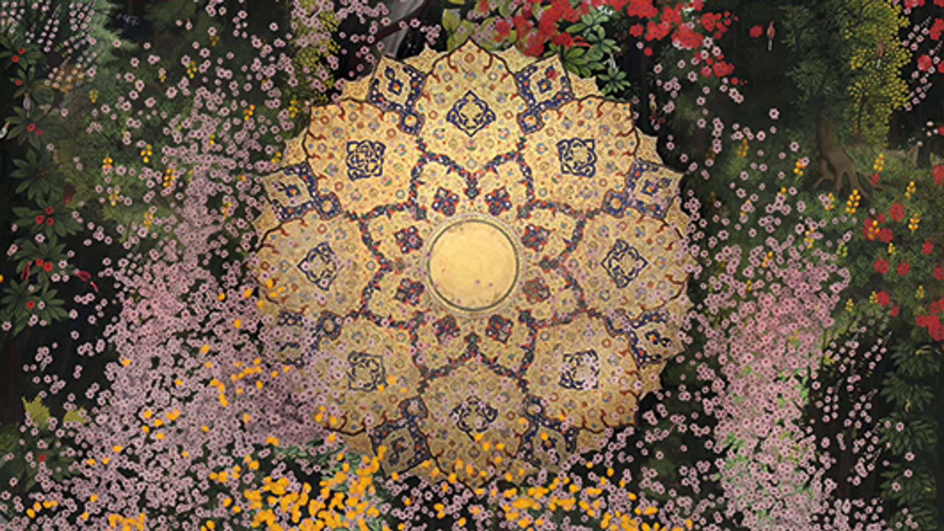 Alongside drawing and painting, Sikander has been making animations since 2001. Laborious, hand-drawn processes remain integral to her work, which consists of making numerous drawings that are scanned upon each added layer of paint. Her work 3 to 12 Nautical Miles unfolds as a cinematic tableau composed of such drawings in ink and gouache, enlivening Sikander’s intricate imagery.