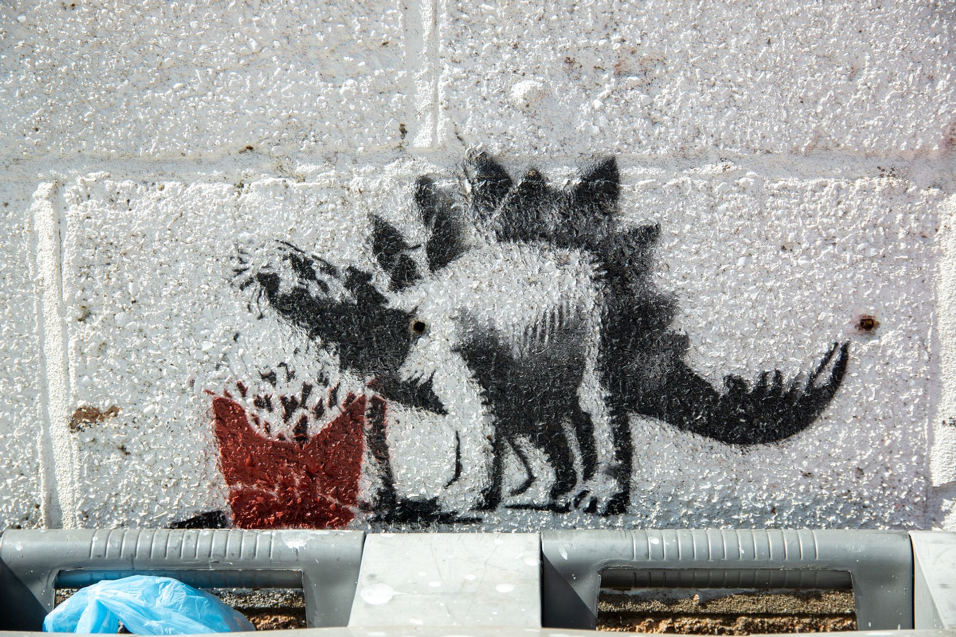 Gary Cook, Dino Eating Fries Stencil, Queen Street, Exmouth, Devon