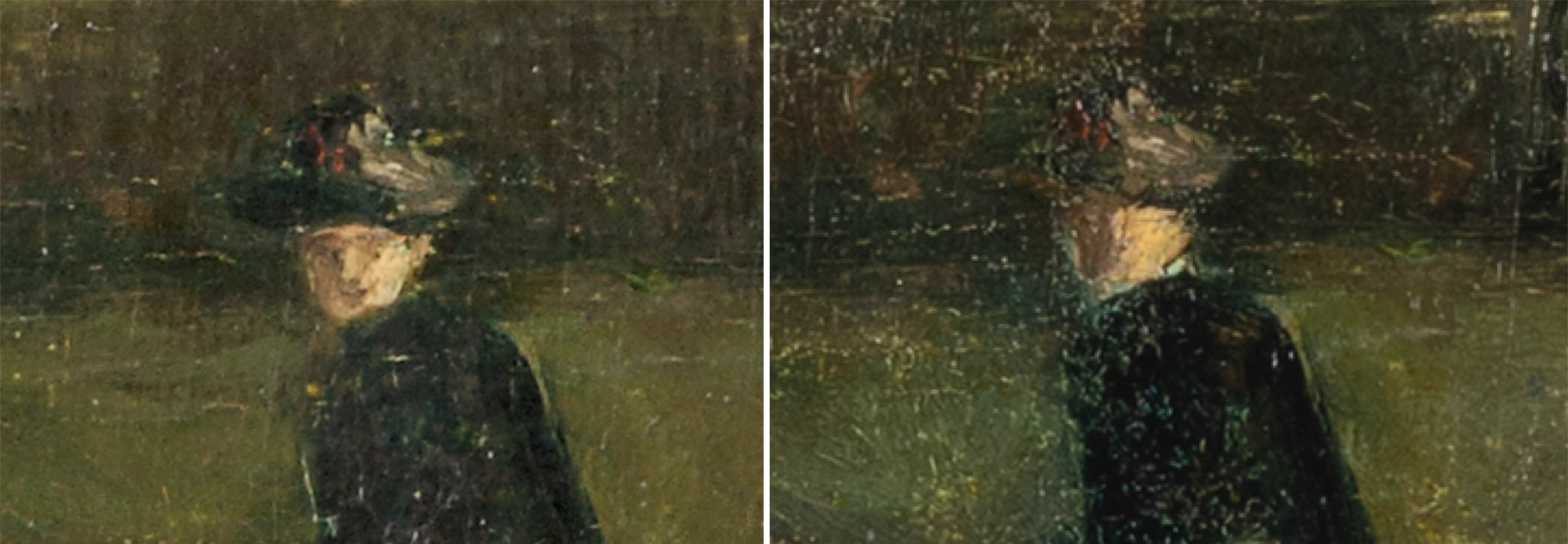 The woman’s face, before restoration (with facial features added in 1903) and after restoration (as Van Gogh depicted her, in 2026)