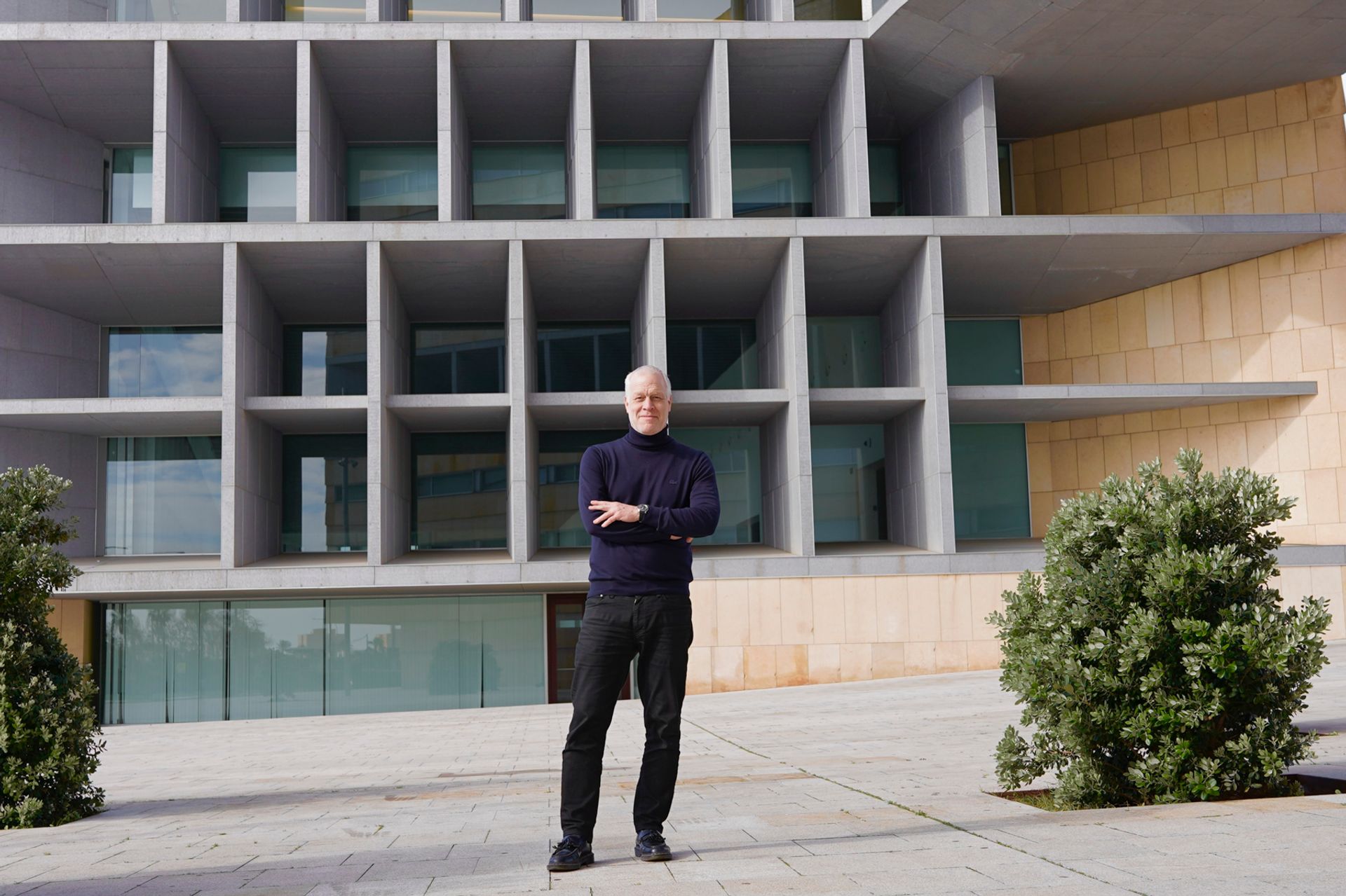 Art Cologne director Daniel Hug in front of Palau de Congressos de Palma, designed by the renowned architect Francisco Mangado. The convention centre will host this year’s Mallorca fair © AConecta