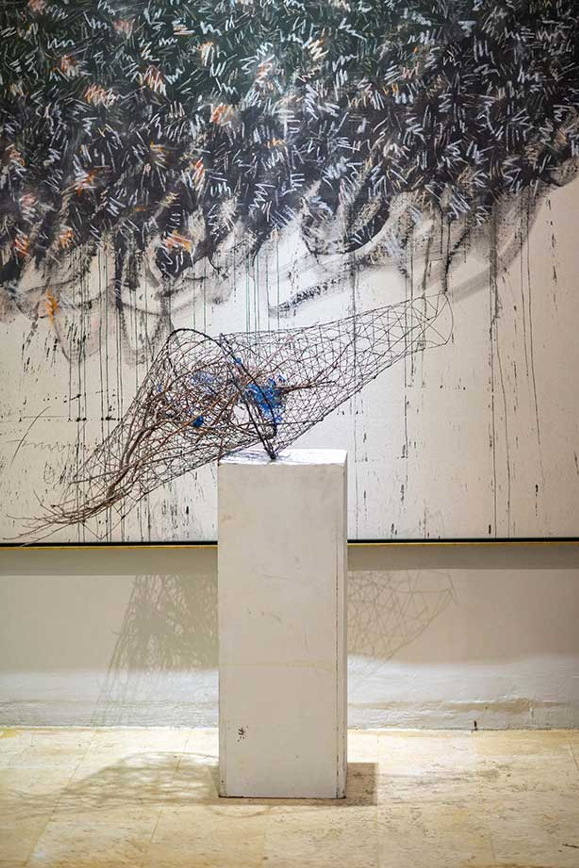Ultimately, Zahed made the difficult decision to postpone the original group exhibition and reconfigure the opening with artists based outside Iran. Ave, who lives in Paris and curated the original show, agreed to participate when he saw the circumstances unfold. Arabi, based in Dubai, was a natural choice, Zahed says, for her pioneering installation work.