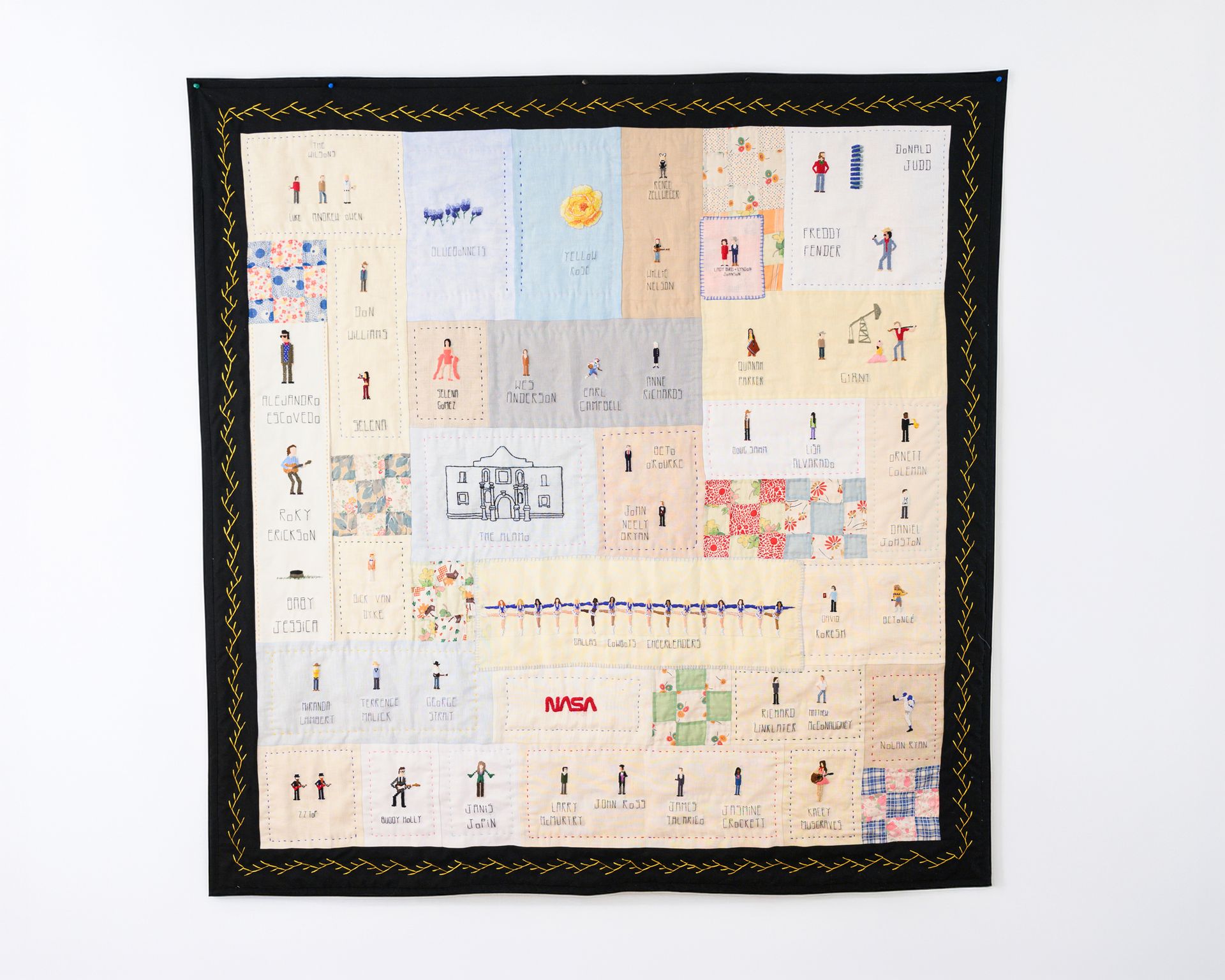 Even dealers and artists from out of town are looking to examine Texas’s diverse cultural history. At the dealer-led fair the Dallas Invitational (until 18 April), the Miami dealer Nina Johnson is showing a quilt by the Kentucky-based artist Elsa Hansen Oldham that maps Texas identity through a patchwork of cultural figures. Beyoncé appears alongside Waco cult leader David Koresh; Donald Judd is depicted next to one of his signature stack sculptures; Selena Quintanilla is shown at her last concert and Willie Nelson wears his red bandana and carries a guitar. Oldham also included politicians like Ann Richards, the most recent Democratic governor of Texas, and James Talarico, the progressive challenger for one of Texas’ senate seats.
