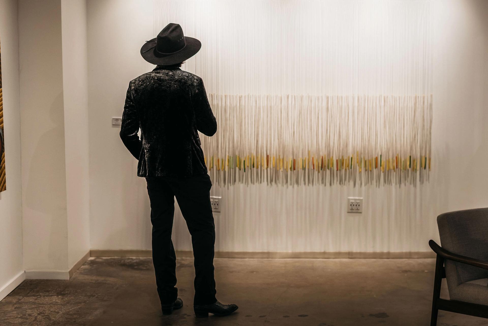 A visitor at the Dallas Art Fair. Photo by Chase Hall