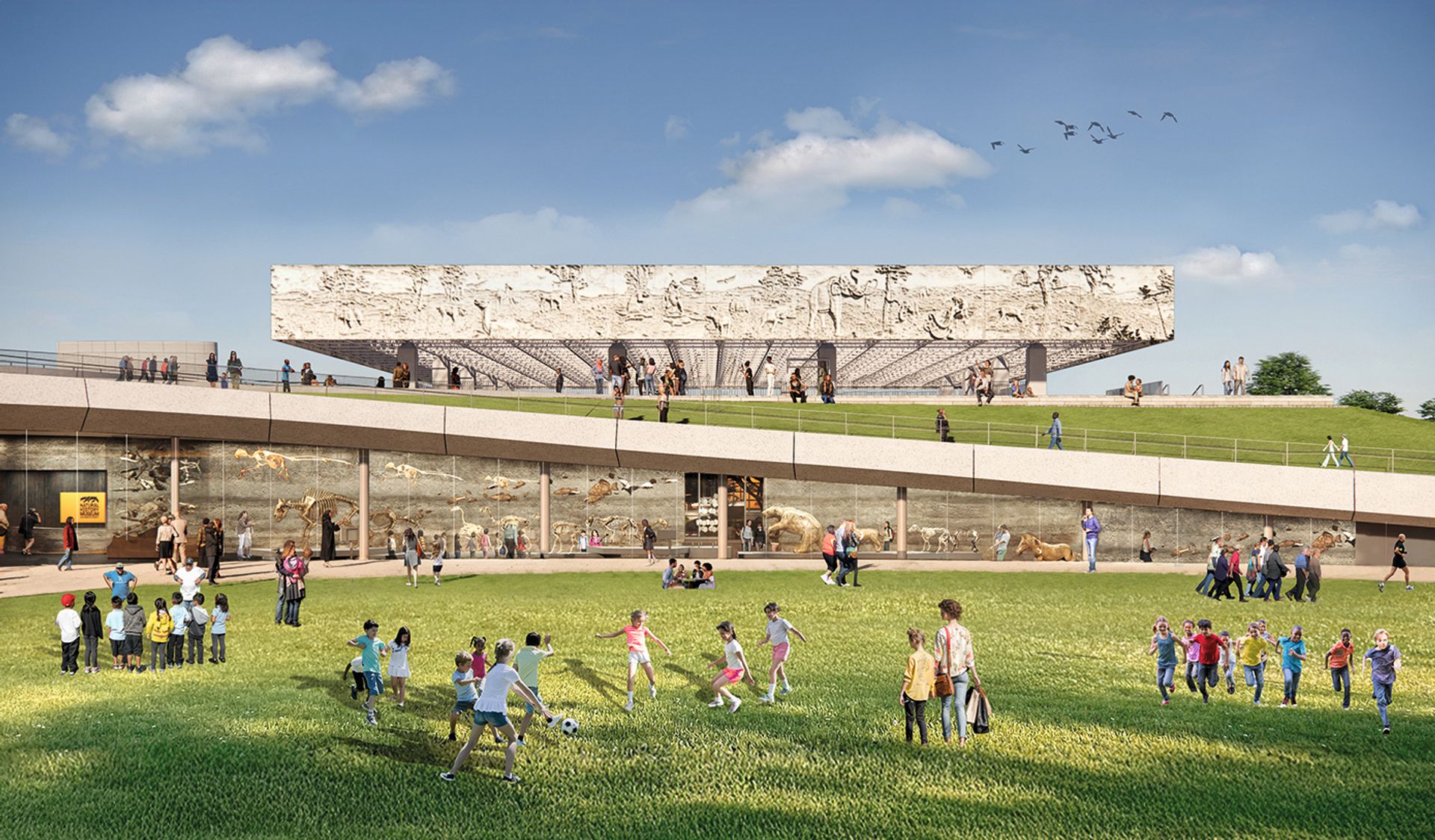 LACMA’s immediate neighbour, the La Brea Tar Pits, is next in line for a transformation. The pits are an important palaeontological site, where natural tar has bubbled up from the ground for tens of thousands of years, trapping and preserving the prehistoric animals who were unwary enough to wander in. Hundreds of thousands of specimens have been unearthed, including skeletons of mammoths and dire wolves. The Natural History Museum of Los Angeles is currently halfway through a $240m fundraising campaign to renovate the site in time for the 2028 Olympics. The project, designed by the architecture firm Weiss Manfredi, will include the creation of a mile-long looping pedestrian walkway, outdoor classrooms and the establishment of a centre for Ice Age research.