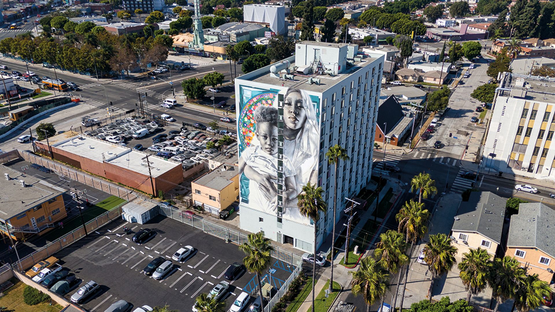 The mural Monument of Love: Mother and Child by El Mac, Augustine Kofie & Aise is part of Destination Crenshaw Courtesy of Destination Crenshaw