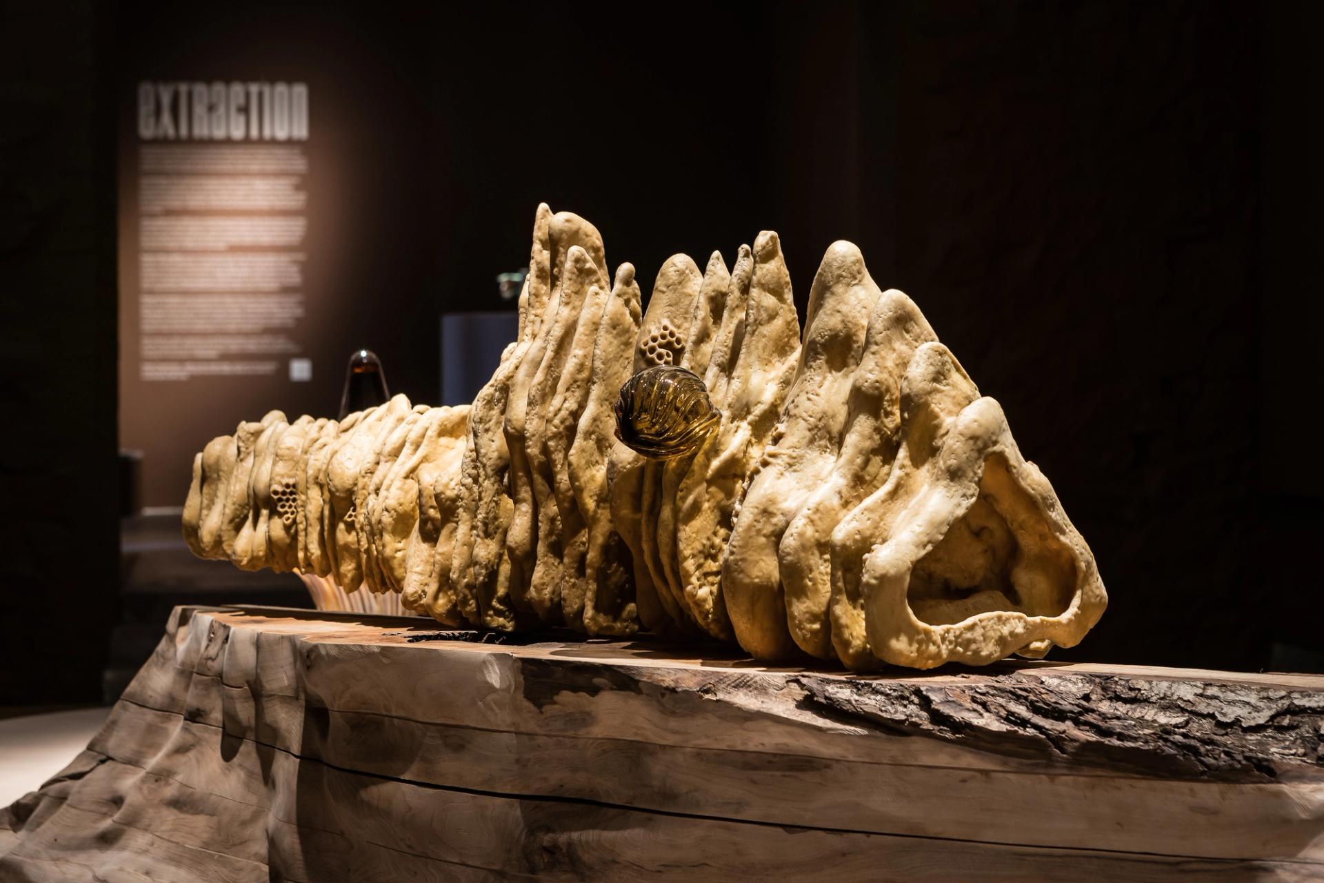 Extraction’s fifth artist reverses the show’s core concept by re-imagining future systems of energy as something contained and metabolic, based on cooperation, symbiosis and collective intelligence. Working in blown glass, beeswax, carved wood, bronze and unexpected materials such as snake venom and honey, Marguerite Humeau's hybrid sculptures propose new models of transformation, growth and survival that do not offer solutions or utopias, but instead provocatively propose a future without humankind at its centre. Meanwhile, Homo sapiens are very much here, and in a big mess.