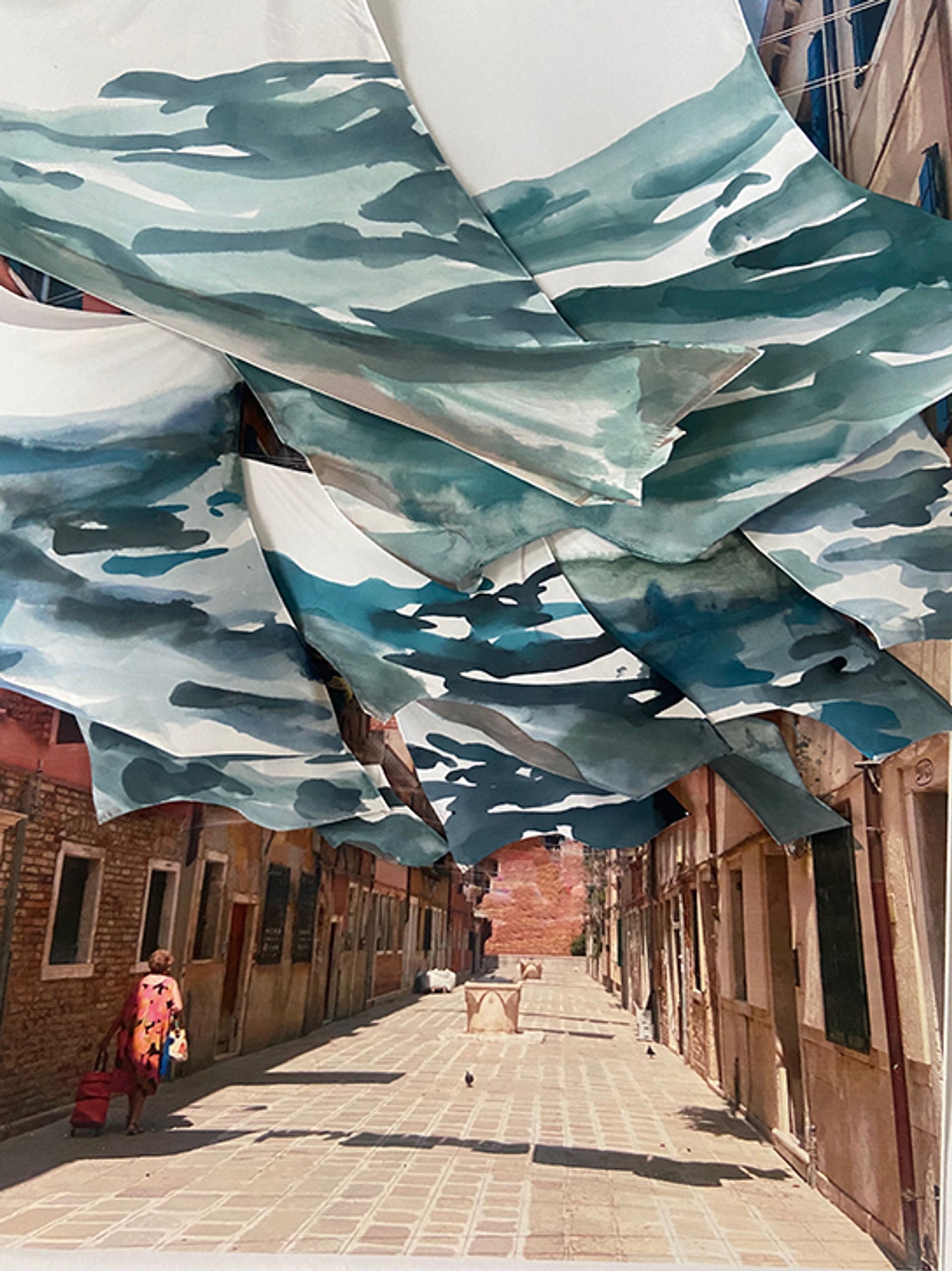 Above a stretch of Corte Nova, a street known for charming images of laundry hanging from suspended clotheslines, the interdisciplinary American artist Melissa McGill has transformed domestic ritual into civic gesture with Marea. Here, between the Biennale Gardens and Arsenale, around 100 paintings created with residents and students from Università Iuav di Venezia will be strung across the street (30 April-10 May). Rendered in lagoon blues and greens, the works ripple overhead, conjuring the tides threatening Venice and acting as a reminder of climate change’s impact on sea levels. The project’s endorsements from the Italian National Commission for Unesco and from the Italian Ambassador to the US underscore its urgency.