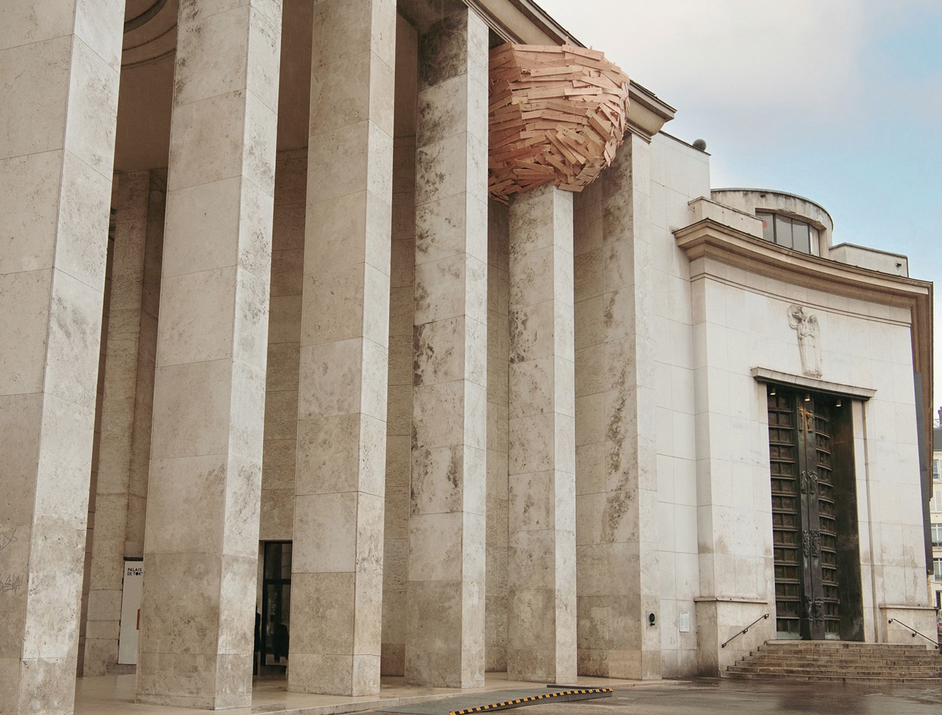 For two weeks in February, there was an explosion in the Palais de Tokyo in Paris. Not a combustible one, but a huge, dynamic vortex made of 5,000 individual pieces of wood, that seemed to be shooting upwards through the top of the grand staircase towards the glazed ceiling. “It could stay there forever,” mused the institution’s president, Guillaume Désanges, gazing at the sculpture, which was like a kinetic force frozen in time. Circumstances, however, would not allow.