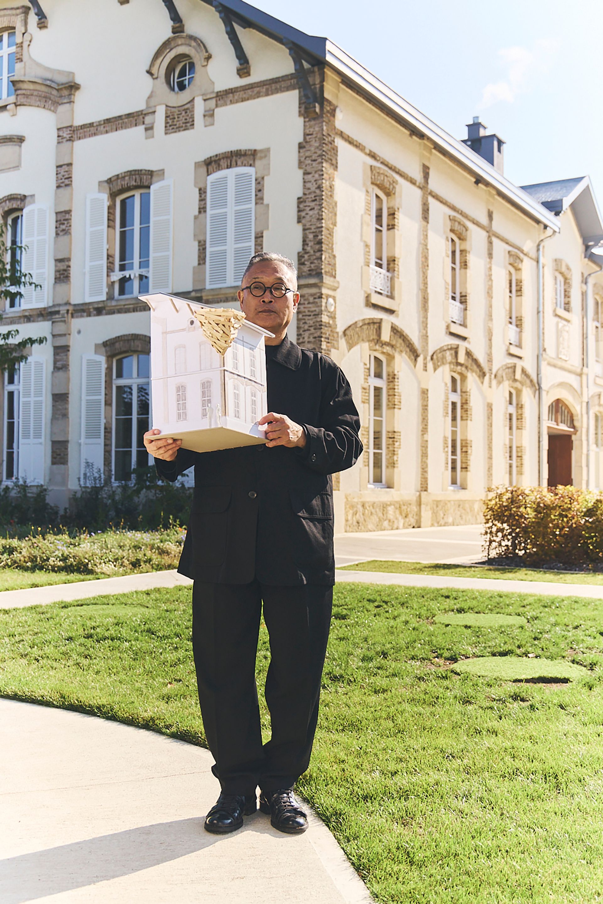 Kawamata with a model of the Nest to be installed on Ruinart’s historic building in Reims Florie Berger