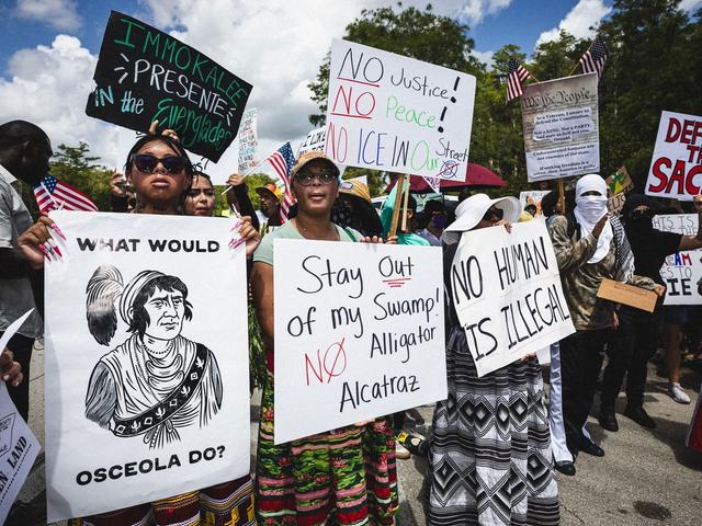 Miccosukee and Seminole people have lead organised opposition to the detention centre, merging cultural practices with strategies of resistance