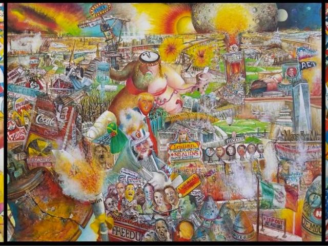 Robert Cenedella, the “Art Bastard”, brings his vision of the apocalypse to a gallery window just a week before the US election