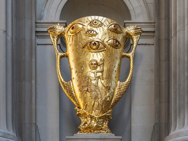 Hew Locke covers Met Museum with golden trophies inspired by colonial looting