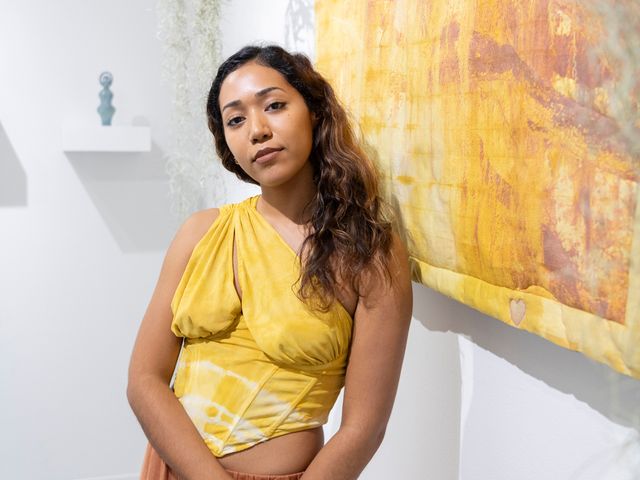 The Peruvian Dominican artist and Miami native investigates the American dream, as well as the act of re-creating home, through photographic textiles that she creates using the traditional hand-dyeing methods of her ancestors