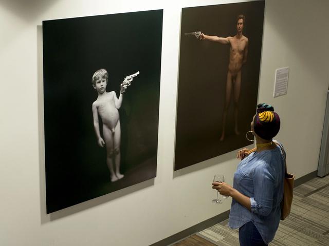 Photographs of works made by artists using decommissioned weapons are displayed in Senate building one month before the election, while originals are on view at local think tank