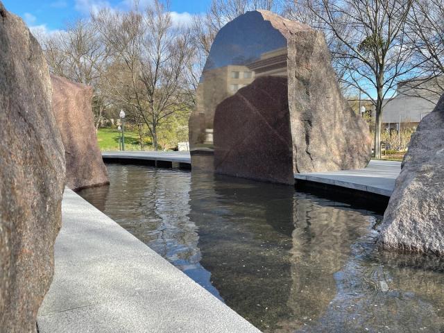 An installation in Washington, DC by Elyn Zimmerman featuring 450,000-pound boulders has been relocated, with the artist reconfiguring and retitling her work for the new site