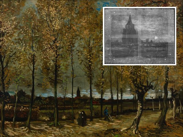 Why did Vincent paint “Poplars near Nuenen” on top of an earlier picture of a church? And was the final picture touched up after he discovered Impressionism in Paris?