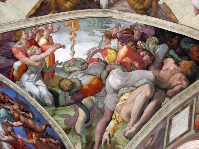 Red chalk preparatory work may be linked to “Worship of the Brazen Serpent” section of Vatican masterpiece