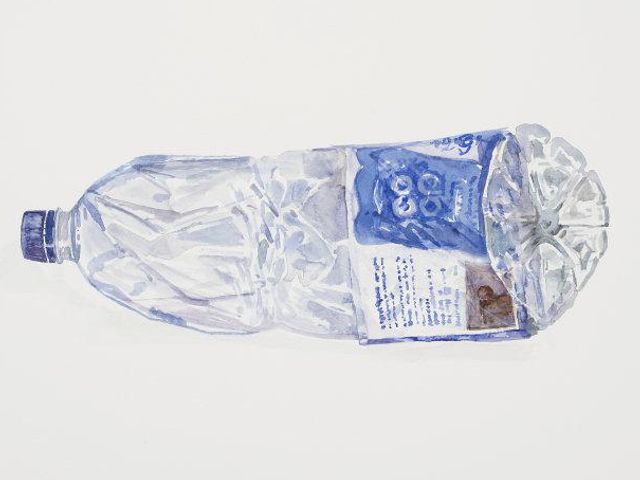 Watercolours of water bottles as well as hundreds of discarded bottles from London's streets will be shown at Amsterdam gallery