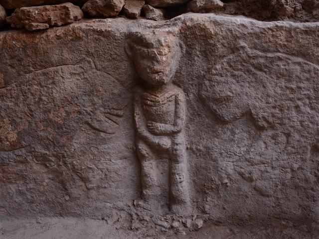 Carving of man holding his penis and surrounded by leopards is oldest known depiction of a narrative scene, archaeologists say