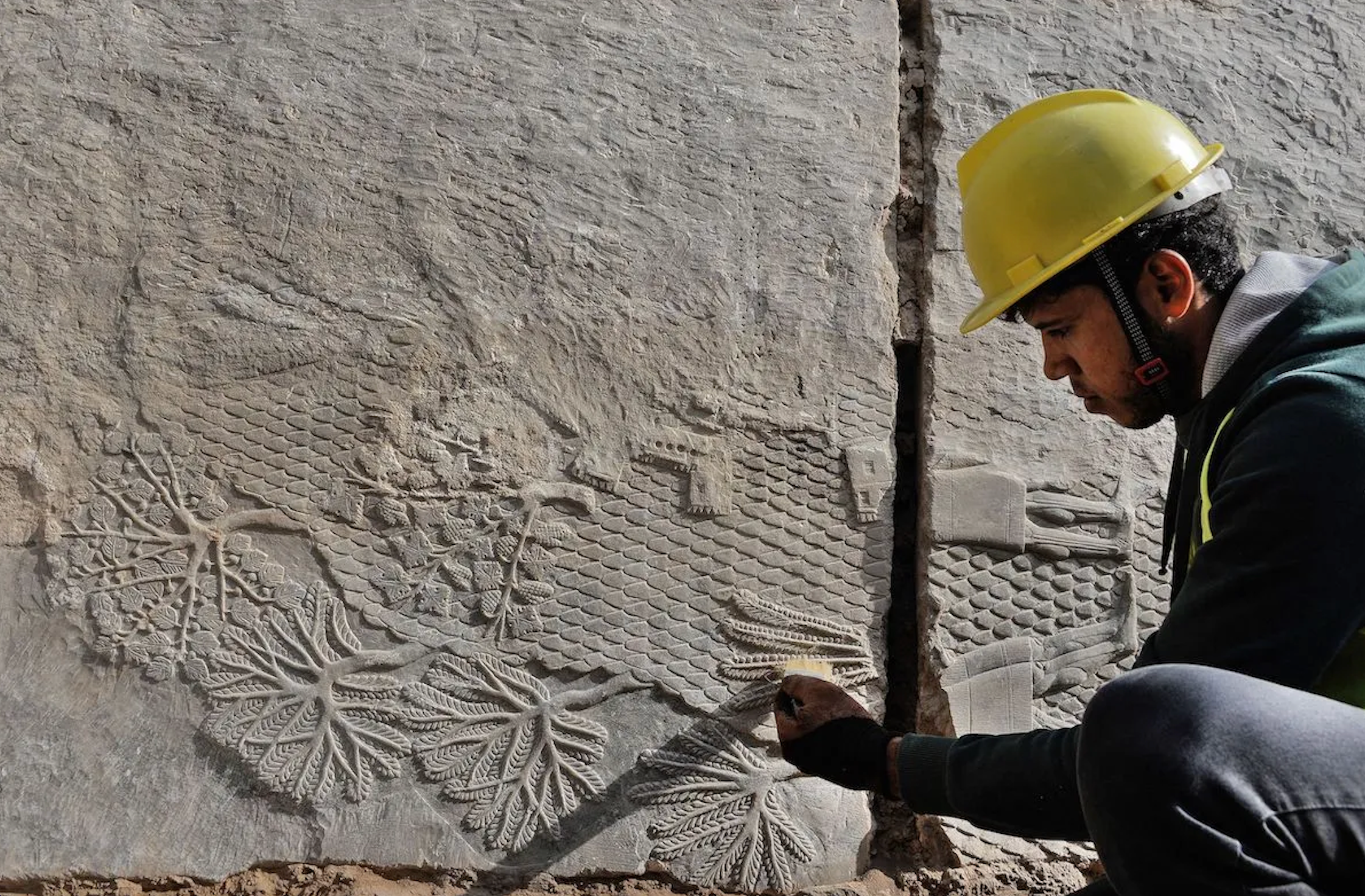 Archaeologists restoring monument damaged by Islamic State discover ancient stone carvings unseen for millennia