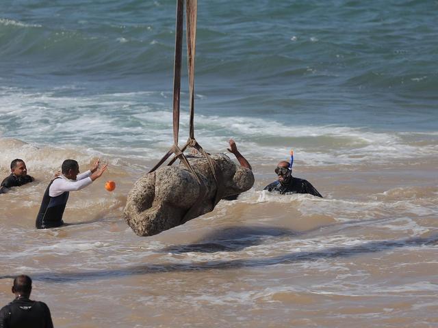 Ancient artefacts from sunken city lifted out of Mediterranean near Alexandria