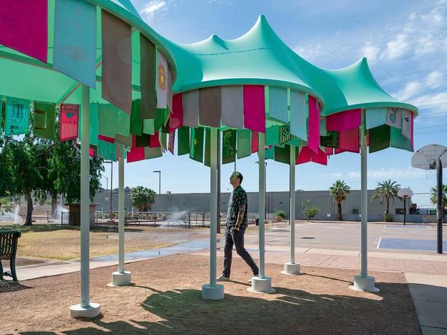 The commissioned shades are part of a local initiative to combat rising temperatures in Phoenix, Arizona