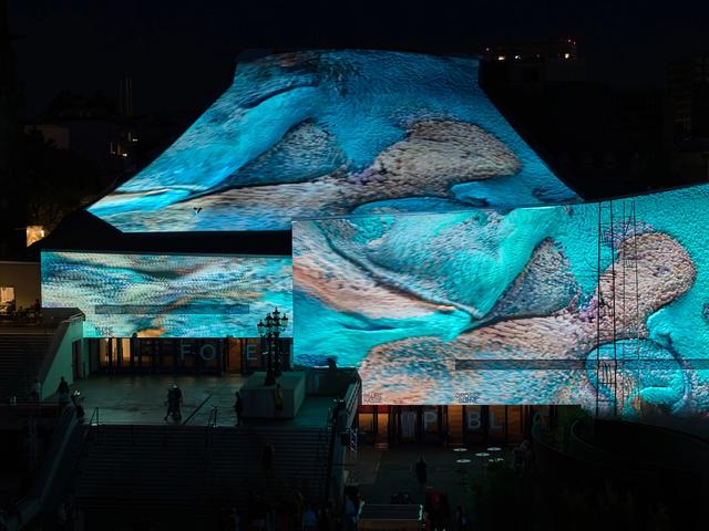 Glacier Dreams is being projected on the façade of Theater Basel this week