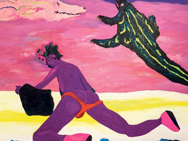 Mind your step: in true Floridian style, a number of works at this year’s fair take crocodiles or alligators as their subjects
