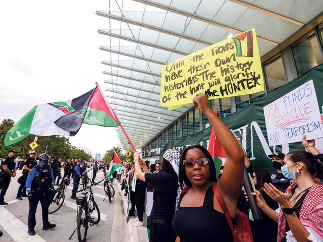 ‘Silence is unacceptable’: artists gather outside Art Basel in Miami Beach to protest ongoing war in Gaza
