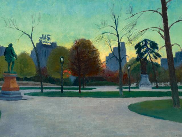 Estimated to fetch $7-$10m, the New York cityscape, depicts the iconic Central Park statue of the playwright