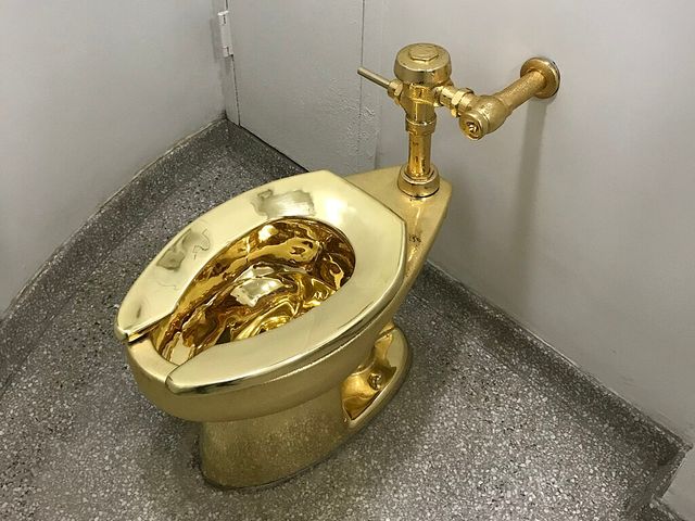 The fully functioning 18-carat gold toilet was removed from an exhibition of Maurizio Cattelan’s work at Blenheim Palace in 2019