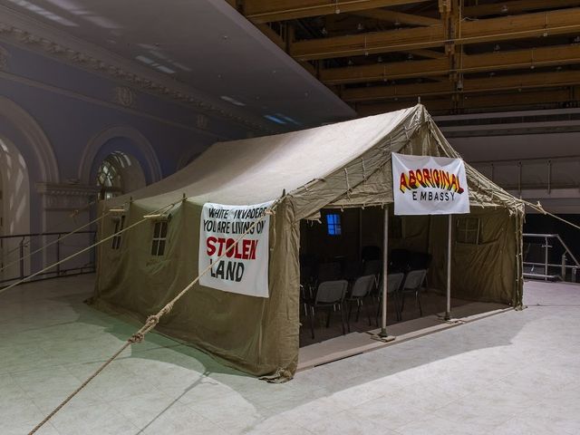 Richard Bell’s homage to the 1972 Aboriginal protest site will host speakers from black activist groups