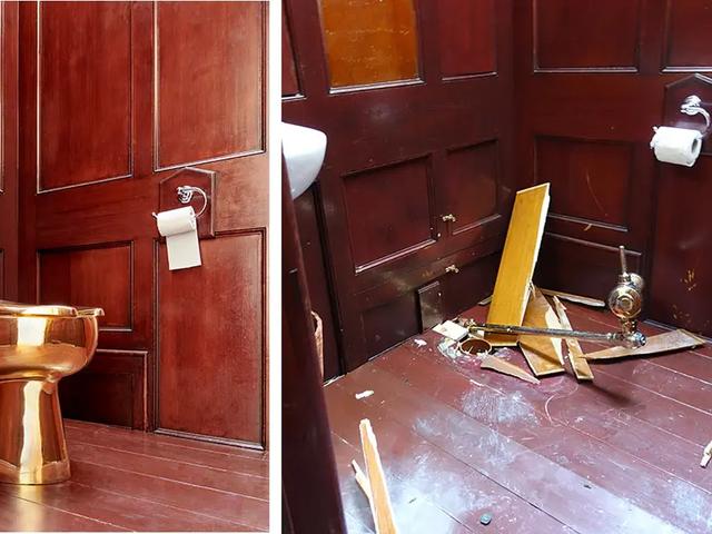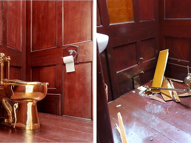 The fully functioning 18-carat gold toilet was removed from an exhibition of Maurizio Cattelan’s work at Blenheim Palace in 2019