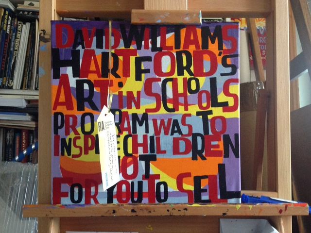 The artist’s work submitted to the Summer Show denounces Hertfordshire’s decision to auction more than 400 works