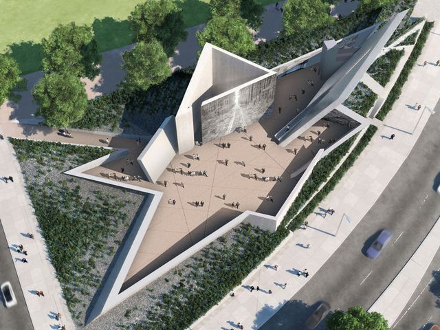 Daniel Libeskind-designed monument in concrete and metal has the shape of a distorted Star of David