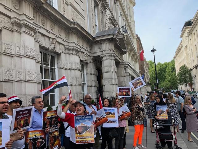 Protestors gather outside Christie's as ancient head of Tutankhamen sells for £4.7m