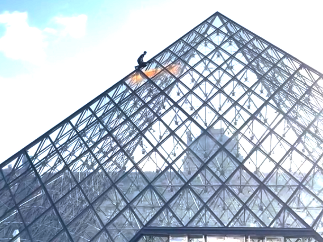 A member of the Dernière Rénovation group scaled the famous glass monument over the weekend