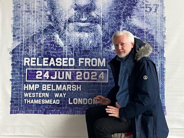 Julian Assange visits artist who held $45m worth of art hostage