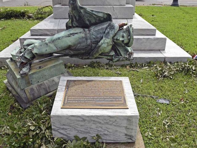 Having weathered protests, controversial Confederate statue is felled by hurricane