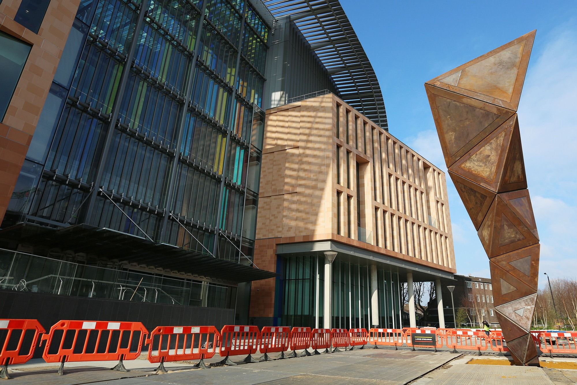 <p> Dramatic column for Francis Crick medical research centre stands opposite international train station </p>
