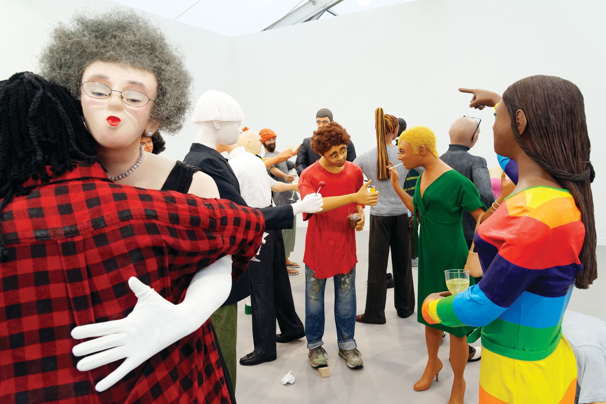 US artist's hand-carved, in-crowd have a swell time on Stephen Friedman Gallery's stand