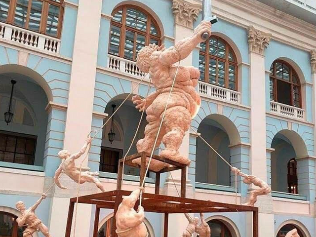 Russian artist Oleg Kulik faces prosecution for 'rehabilitating Nazism' with sculpture shown at Art Moscow