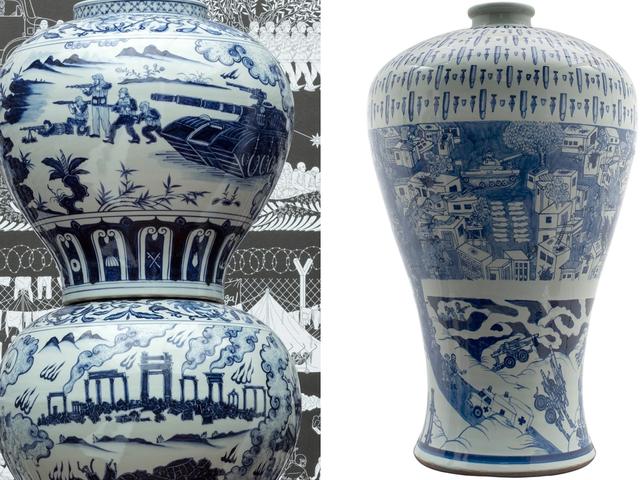 Raed Yassin says there are "striking similarities" between his ceramic series on the Lebanese civil war and Ai's pieces on the Syrian war and refugee crisis